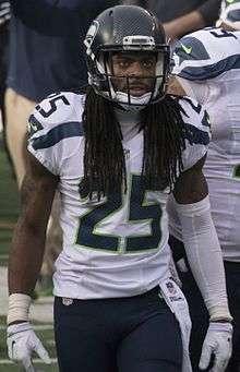 Richard Kevin Sherman[1] (born March 30, 1988) is an American football cornerback for the Seattle Seahawks of the National Football League (NFL). He played college football at Stanford, both as a wide receiver and as a cornerback,[2] and was drafted by the Seahawks in the fifth round of the 2011 NFL Draft.