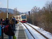 The Ringzug (“ring train”), also called the 3er-Ringzug (“ring train of the 3”) is a passenger transport network in the districts of Tuttlingen, Rottweil and Schwarzwald-Baar in southern Baden-Württemberg, Germany. The Ringzug went into regular operations on 31 August 2003 and has operated in its current form since 12 December 2004. The concept of the Ringzug is the operation of a clockface timetable, coordinated with a variety of other buses and train services, over an S-Bahn-like network in a rural environment. In March 2006, the passenger association Pro Bahn described the Ringzug as an exemplary public transport system at its 2006 passenger transport awards (Fahrgastpreis 2006).[1] The Ringzug has aroused interest beyond the region and can point to steadily rising passenger numbers and declining deficits.