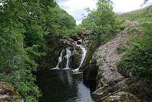 Beezley Falls are reached approximately 2.1 miles (3.4 km) from the source at God's Bridge. These falls consist of a series of cascades, including the triple spout, running through Baxengyhll Gorge. Rival Falls has a plunge pool known as the Black Hole. The steepest drops are between 9 feet (2.7 m) and 12 feet (3.7 m) approximately. Snow Falls are situated in the lower gorge about 0.5 miles (0.80 km) downstream and has similar drops.[3]