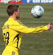 During the following season, Rogers' fourth at Columbus Crew, he made 34 appearances and scored twice.[33] His first goal of the campaign came in a 3–2 win over New England Revolution in May 2010, with Rogers' goal coming in the 91st minute of the match.[34] He also netted in a 2–1 win over Colorado Rapids in the MLS Cup Conference semi-final.[35] Despite Rogers' goal, eventual champions Rapids would go on to win the tie 5–4 on penalties after extra-time.[35] Rogers opened his account for the 2011 season in the club's first game of the season, scoring a late consolation penalty as Crew went down 3–1 to D.C. United.[36] A month later, in April 2011, he scored the only goal of the game in a 1–0 home victory over Sporting Kansas City at Columbus Crew Stadium.[37] It was to be his last goal for the club, in a season where he played 30 times.[38] His last game for the club was in a 1–0 defeat to Colorado Rapids in the MLS Cup wildcard game on October 28, 2011.[39] During his last season with the club, he led the team in assists and was also awarded the 'Crew Hardest Working Player' award.[38][40] In December 2011, it was announced that Rogers was a free agent after he rejected the offer of a contract extension at Columbus Crew.[41][42][43] During his five seasons at Crew, he made 138 appearances and scored 17 times.[44]