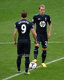 On his Premier League debut on 18 August, Soldado scored Tottenham's winning goal with a penalty kick in a 1–0 win against Crystal Palace at Selhurst Park.[32] Four days later, he scored his first goals in European competition for Spurs, netting a brace in a 5–0 win at FC Dinamo Tbilisi in the Europa League playoff round.[33]
