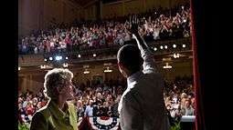 On November 2, 2004, Carnahan was elected as Missouri's 38th Secretary of State. In her first bid for elected office, she defeated then-Speaker of the Missouri House of Representatives Catherine Hanaway (R) by over 120,000 votes.[4] In November 2008, Carnahan was reelected with nearly 62% of the vote by receiving over 1.7 million votes, the most votes ever cast for a candidate in Missouri history. In 2005 she was named one of 24 "rising stars" in American politics by the Aspen Institute's Rodel Foundation, a leading nonpartisan think tank.