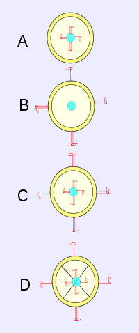 Newton discusses a bucket filled with water hung by a cord.[11] If the cord is twisted up tightly on itself and then the bucket is released, it begins to spin rapidly, not only with respect to the experimenter, but also in relation to the water it contains. (This situation would correspond to diagram B above.)