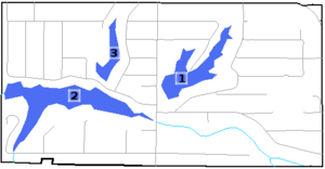 Three small lakes – Meshach, Shad, and Shadrach – are located within the village of Royal Lakes.[4]