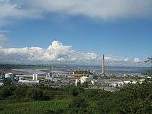 Of Runcorn's former industries, all but the chemical industry have disappeared. The industry was dominated for many years by ICI's Chlor Chemical division; since divested and taken over by Ineos.[47] In Runcorn, Ineos manufactures chemicals including chlorine, chlorine-containing compounds including vinyl chloride, heavy chemicals including alkalis, and fluorine-containing compounds. A separate business within the same company manufactures salt from brine transported by pipeline from the saltfields of central Cheshire.[48] The former ICI offices and laboratories now comprise the Heath Business and Technical Park, which provides office, laboratory, conference, and leisure facilities.[49] To the east of the town, diverse industries have been developed including, because of the proximity to the motorway system, warehouses and distribution centres.[20] The town continues to act as a port on the Manchester Ship Canal. There are two adjacent ports. Runcorn Docks is owned by the Manchester Ship Canal Company, which is part of the Peel Ports Group.[50] The Port of Weston is owned by the Stobart Group.[51][52] In March 2014 the UK's largest incinerator for burning refuse-derived fuel, managed by Viridor, commenced operation in Weston Point.[53]