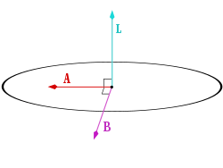 since A and B are both perpendicular to L as well, L ⋅ A = L ⋅ B = 0. For clarification, this equation reads, in explicit components,