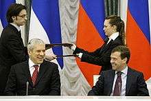- ↑ Russia's Medvedev condemns Western 'paternalism'