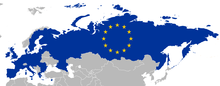 Russian-European relations are the international relations between the European Union (EU) and its largest bordering state, the Russian Federation, to the east.[1] The relations of individual member states of the European Union and Russia vary, though a 1990s common foreign policy outline towards Russia was the first such EU foreign policy agreed. Furthermore, four European Union-Russia Common Spaces are agreed as a framework for establishing better relations. The latest EU-Russia strategic partnership was signed in 2011,[2][3] but it was later challenged by the European Parliament in 2015 following the annexation of Crimea and war in Donbass.[4]