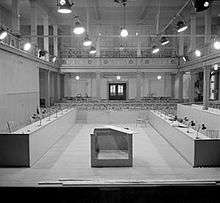 The trial lasted 54 days in court. It began on 17 September with the indictment and the opening speech for the prosecution. Brigadier Glyn Hughes was the first witness for the prosecution on 18–19 September.[9] On 20 September, the British Army screened a film they had made of the conditions at Belsen immediately after liberation. On 21 September, the court visited Bergen-Belsen. Evidence for the defence began on 8 October with the opening speech for the defendant Kramer who also testified. Closing speeches were made from 7–12 November, followed by the closing arguments by the prosecution on 13 November. Sentencing took place four days later, on 17 November 1945.[10]