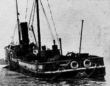 The tide continued to ebb, causing Fenella to slip and heel over to port, exposing the damage incurred. Captain Mylchreest and his officers inspected the damage and found that a gash had been inflicted on her starboard side taht was 10 inches (25.4 cm) long and 1 inch (2.54 cm) wide. The ship's carpenter managed to wedge and plaster the damage with clay so as it was rendered watertight.[17] Two other holes were subsequently discovered on the port side, one seven inches (17.8 cm) long and 1 inch (2.54 cm) wide and the other 15 inches (38.1 cm) long and 1 inch (2.54 cm) wide, which led to the engine room and aft hold respectively. Fenella′s master engaged the services of a pilot in order to assist with the situation and at 19:00 hours Satanella arrived at the scene.[17]