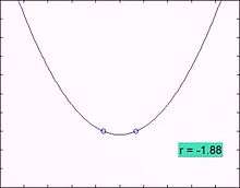 In the mathematical area of bifurcation theory a saddle-node bifurcation, tangential bifurcation or fold bifurcation is a local bifurcation in which two fixed points (or equilibria) of a dynamical system collide and annihilate each other. The term 'saddle-node bifurcation' is most often used in reference to continuous dynamical systems. In discrete dynamical systems, the same bifurcation is often instead called a fold bifurcation. Another name is blue skies bifurcation in reference to the sudden creation of two fixed points.[1]