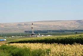 The Saddle Mountains as seen from the south in the summer of 2006. Note gas drilling rig in the foreground. | |