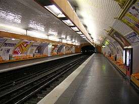 Saint-Philippe du Roule is a station on line 9 of the Paris Métro. The station opened on 27 May 1923 with the extension of the line from Trocadéro to Saint-Augustin. The village of Roule, which became a suburb in 1722, was a small locality called Romiliacum by Frédégaire, Crioilum by Saint Eligius, then Rolus in the 12th century.