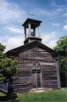 The church, a small wooden structure, is a combination of Greek/gothic and classical styles. The plans for the building were drawn up by Father Mazzuchelli. The church had three rooms behind the altar that provided living quarters for the priest whenever he stayed in the village. Father Mazzuchelli opened a school in these rooms in 1847 and staffed the small school with the Sinsinawa Dominican Sisters.