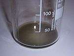 Salmiakki Koskenkorva is a somewhat viscous liquid of characteristic black color, dark grayish brown in thinner layer. At closer view, very fine particulate of carbon black suspended in the liquid is visible.