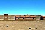 It serves the town of San Antonio de los Cobres, in the middle of the Puna de Atacama, nearby copper mines. After the viaduct La Polvorilla, highest point of the line (4,220 m), the railway runs on the borders of Jujuy Province at Olacapato and, between Tolar Grande and Caipe, it crosses in the middle a dry lake named Salar de Arizaro. The station of Socompa, named after the Andean vulcan, is a bi-national station located between the Argentinian-Chilean frontier line.[10]