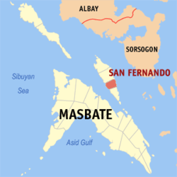 San Fernando is a municipality in the province of Masbate, Philippines. It is located On Ticao Island. According to the 2010 census, it has a population of 21,309 people.[3] The economy is based on fishing, farming, and other trades.