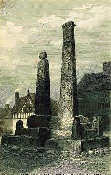 The Sandbach Crosses are two 9th-century stone Anglo-Saxon crosses now erected in the market place in the town of Sandbach, Cheshire, England.[1] They are unusually large and elaborate examples of the type and are recorded in the National Heritage List for England as a designated Grade I listed building,[2] and they are a scheduled monument.[3]