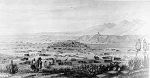 The area of Santa Fe was originally occupied by indigenous people, who had built a number of Pueblo villages about 1050 to 1150. One of the earliest known settlements in what today is downtown Santa Fe came sometime after 900. A Native American group built a cluster of homes that centered around the site of today's Plaza and spread for half a mile to the south and west; the village was called Ogapoge.[5] The people settled along the Santa Fe River for its water and transportation.