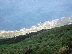 | The coastal portion of Santo Amaro village, seen from the Achada Plain near Chã do Pelado | |
