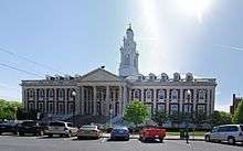 Schenectady City Hall is the seat of government of the city of Schenectady, New York, United States. Designed by McKim, Mead, and White, the building was constructed between 1931 and 1933.[2] It is located on the block between Clinton, Franklin, Jay and Liberty streets. It is built in a revival of the Federal Style, the dominant style of American architecture from 1780 to 1830.[2] Its most prominent features include the square clock tower, with its gold-leaf dome and weathervane, and the Ionic neoclassical portico. It houses not only city government but the local office of U.S. Rep. Paul Tonko.[3]