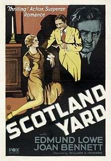 Scotland Yard is a 1930 American crime film directed by William K. Howard and written by Garrett Fort. The film stars Edmund Lowe, Joan Bennett, Donald Crisp, Georges Renavent, Lumsden Hare and David Torrence. The film was released on October 19, 1930, by Fox Film Corporation.[1][2][3]