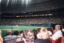 The Kingdome was somewhat problematic as a baseball venue: foul territory was quite large, and seating areas were set back far from the playing field, with seats in the upper deck as far as 617 feet (188 m) from home plate.[21] Part of the problem was that the Kingdome was not a multipurpose stadium in the truest sense. Instead, it was built as a football stadium that could convert into a baseball stadium. For instance, most fans in the outfield seats on the 300 level were unable to see parts of right and center field; these areas were not part of the football playing field.