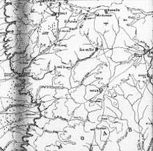The 2nd Light Horse Brigade was delayed by the difficult track up the Wadis Jeri'a and Sir which did not reach Ain Hummar on the main road five miles (8.0 km) east of Es Salt until the afternoon of 24 September. The main road had been blown up in places by the retreating Ottoman Army, forcing Chaytor to pause on 24 September to wait for supplies as well. During the day the New Zealand Mounted Rifles Brigade occupied Suweile and one hundred men from the Auckland Mounted Rifles Regiment took 11 hours to ride twenty miles (32 km), cut the railway five miles (8.0 km) north of Amman and return to Suweile.[43] Accompanied by four officers, the raiding group carrying nothing but tools and weapons, advanced twelve miles (19 km) to the railway, where they took out a section of the Hedjaz line five miles (8.0 km) north of Amman near Kalaat ez Zerka station.[44][45][46][Note 7]