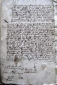 Predominating before the dominance of Italic script, it arose out of the need for a hand more legible and universally recognizable than the book hand of the High Middle Ages, in order to cope with the increase in long-distance business and personal correspondence, in cities, chanceries and courts. The hand thus used by secretaries was developed from cursive business hands and was in common use throughout the British Isles through the seventeenth century. In spite of its loops and flourishes it was widely used by scriveners and others whose daily employment comprised hours of writing. By 1618 the writing-master Martin Billingsley[2] distinguished three forms of secretary hand, as well as "mixed" hands that employed some Roman letterforms, and the specialised hands, the "court hand" used only in the courts of the King's Bench and Common Pleas and the archaic hands used for engrossing pipe rolls and other documents.