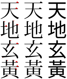 - The analogs of serifs are called 鱗, literally "fish scales".
