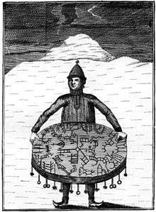 There are also examples of "mutually opposing symbols", distinguishing a "white" shaman who contacts sky spirits for good aims by day, from a "black" shaman who contacts evil spirits for bad aims by night.[84] (Series of such opposing symbols referred to a world-view behind them. Analogously to the way grammar arranges words to express meanings and convey a world, also this formed a cognitive map).[15][85] Shaman's lore is rooted in the folklore of the community, which provides a "mythological mental map".[86][87] Juha Pentikäinen uses the concept "grammar of mind".[87][88] Linking to a Sami example, Kathleen Osgood Dana writes: