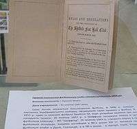 The first written set of laws were produced at the club's first annual general meeting on 21 October 1858. The original draft was amended at the same meeting to produce the following set of rules for the 1858–59 season.[12]