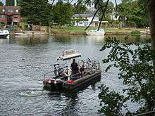 The ferry operates from 0800 on weekdays, 0900 on Saturdays, and 1000 on Sundays. Service finishes at 1730 on all days. Operation is on request and intending passengers should ring the bell provided on each side of the river. When the ferry is not in service, the closest alternative is to cross the river downstream at Walton Bridge, a round trip distance of some 3 miles (4.8 km) on foot, further by car.[1][2]