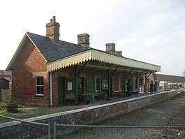 The Shillingstone Railway Project (formerly the Shillingstone Station Project) is a heritage railway project based at Shillingstone railway station on the former Somerset and Dorset Joint Railway.[1] It is supported by the North Dorset Railway Trust (NDRT). The medium-term aim is to restore the current leased length of 46 miles 58 1⁄2 chains (75.21 km) to 46 mi 76 1⁄2 chains (75.57 km) from Bath Junction: an addition of 1,200 feet (370 m) of single track mainline with a loop through the platforms. The signal box, coal store, motor trolley hut, permanent way huts, signals and pole route will also be rebuilt, the signalling being controlled by the box in time. The North Dorset trailway runs alongside the formation and up over the 395-foot (120 m) 'down' platform.