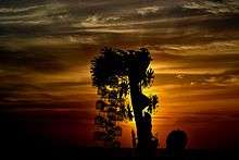 Many photographers use the technique of photographing people, objects or landscape elements against the light, to achieve an image in silhouette. The background light might be natural, such as a cloudy or open sky, mist or fog, sunset or an open doorway (a technique known as contre-jour), or it might be contrived in a studio; see low-key lighting. Silhouetting requires that the exposure be adjusted so that there is no detail (underexposure) within the desired silhouette element, and overexposure for the background to render it bright; so a lighting ratio of 16:1 or greater is the ideal. The Zone System[31] was an aid to film photographers in achieving the required exposure ratios. High contrast film, adjustment of film development,[32] and/or high contrast photographic paper may be used in chemical-based photography to enhance the effect in the darkroom.[33] With digital processing the contrast may be enhanced through the manipulation of the contrast curve for the image.[34]