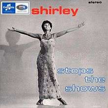 Shirley Stops the Shows is the seventh Shirley Bassey studio album, her 5th and final studio album recorded for the EMI/Columbia label in the UK. Released in 1965, this album is a mix of standards and showtunes. Shirley Bassey was at a high point in her career, with worldwide success of her single "Goldfinger", but the album failed to chart in the UK, a first for her Columbia albums.[1] The album met with more success in the US, reaching number 85 in the US Pop charts.[2] For the US market it was issued with an alternative running order, retitled Shirley Bassey Belts the Best! and "The Lady Is a Tramp" was replaced by "Goldfinger". Original release was in mono and stereo, both mono versions feature an alternative studio recording of "People" which has not yet been re-issued on CD. The stereo version, remastered, was issued on CD in 2008 together with 12 of Those Songs by BGO Records.