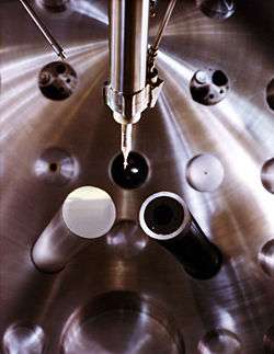 The basic idea of any ICF device is to rapidly heat the outer layers of a "target", normally a small plastic sphere containing a few milligrams of fusion fuel, typically a mix of deuterium and tritium. The heat burns the plastic into a plasma, which explodes off the surface. Due to Newton's Third Law, the remaining portion of the target is driven inwards, eventually collapsing into a small point of very high density. The rapid blowoff also creates a shock wave that travels towards the center of the compressed fuel. When it meets itself in the center of the fuel, the energy in the shock wave further heats and compresses the tiny volume around it. If the temperature and density of that small spot is raised high enough, fusion reactions will occur.