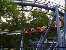 On the evening of August 23, 1999, a 20-year-old man was thrown from the train's final turn at a speed of 40 miles per hour (64 km/h) sustaining a fatal head injury upon contact with a steel walkway. Shockwave and two similar rides at other Paramount amusement parks were immediately closed. The event was originally reported as "an accident [that] resulted in the death of one park visitor,"[4] but further investigation proved otherwise. Bolstered by numerous eyewitness accounts, the cause was later attributed to the victim's disregard of park safety rules as he was seen intentionally freeing himself from restraints. In addition, an inspection found the safety restraints to be working properly at the time of the accident. Shockwave was reopened three days later on August 26, 1999.[5]