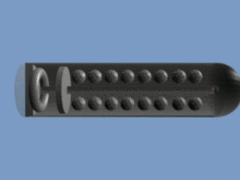 The design was improved by Captain E. M. Boxer of the Royal Arsenal around 1852 and crossed over when cylindrical shells for rifled guns were introduced. Lieutenant-Colonel Boxer adapted his design in 1864[2] to produce shrapnel shells for the new rifled muzzle-loader (RML) guns : the walls were of thick cast iron, but the gunpowder charge was now in the shell base with a tube running through the centre of the shell to convey the ignition flash from the time fuze in the nose to the gunpowder charge in the base. The powder charge both shattered the cast iron shell wall and liberated the bullets.[3] The broken shell wall continued mainly forward but had little destructive effect. The system had major limitations: the thickness of the iron shell walls limited the available carrying capacity for bullets but provided little destructive capability, and the tube through the centre similarly reduced available space for bullets.[4]