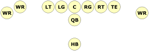 Single set back (also known as the "Lone Setback" or "Singleback" or "Ace" formation or "Oneback" or "Solo") is an offensive base formation in American Football which requires only one running back (usually a halfback) lined up about five yards behind the quarterback. There are many variations on single back formations including two tight ends and two wide receivers, one tight end/three wide receivers, etc. The running back can line up directly behind the quarterback or offset either the weak side (away from the tight end) or the strong side (towards the tight end).