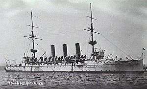 Commanded by Henry T. Buller, the British ship HMS Highflyer was a protected cruiser built in 1898 with eleven 6-inch guns, nine 12-pounder guns, six 3-pounder guns and two torpedo tubes. She had been detached to support the 5th Cruiser Squadron in hunting the German raider.