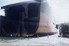 The ship breaking industry in Sitakunda has surpassed similar industries in India and Pakistan to become the largest in the world.[1][2] As of August 2007, over 1,500,000 metric tons (1,476,310 long tons) of iron had been produced from the scrapping of about 20 ships in the 19 functional ship yards scattered over 8 square kilometres (3 sq mi) along the coast of Sitakunda 8–10 kilometres (5–6 mi) from Chittagong, near Fouzderhat. Local re-rolling mills, as well as similar mills, process the scrap iron.[27][81][82] Bangladesh, with no local metal ore mining industry of its own, is dependent on ship-breaking for its domestic steel requirements; the re-rolling mills alone substitute for import of about 1,200,000 metric tons (1,181,048 long tons) of billets and other raw materials.[27] There are 70 companies registered as ship breakers in Chittagong, employing 2,000 regular and 25,000 semi-skilled and unskilled workers.[82] Organized under the Bangladesh Ship Breakers Association, (BSBA),[25] these include companies within large local conglomerates that sought ISO certificates.[83]