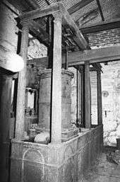 The small six-column engine may be considered as an early form of semi-portable engine.[2] Its pre-fabricated nature and avoidance of foundations made it quicker, thus cheaper, to first install. It also encouraged the re-use of engines on other sites. The small Birmingham engine is known to have worked on at least three different sites as a winding engine, grinding fireclay and finally as a farm chaff cutter, a working life of around 130 years.[2][6] The Cobb's Brewery engine (1825) at Margate was one of a batch built for a sugar plantation in the West Indies, but owing to their bankruptcy before shipping it was sent instead to South America. Its ship then foundered on the North Foreland and it was purchased from the wreck for use locally.[7] The versatility of this design meant that they could be used easily by a variety of industries.