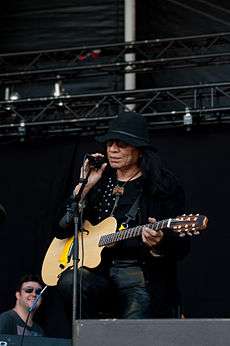 Sixto Diaz Rodriguez, known professionally as Rodriguez (born July 10, 1942), is an American singer-songwriter from Detroit, Michigan.[1] His career initially proved short lived in the United States, but unknown to Rodriguez his albums became extremely successful and influential in South Africa. According to the film-makers of the documentary about him, Searching for Sugar Man, sales of his records outnumbered those of Elvis Presley in South Africa. It was incorrectly rumored there that he had committed suicide.[2]