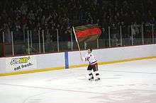Max Taylor skates with the St. Lawrence flag in March 2007.