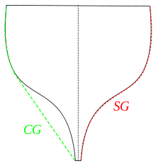 Skin girth is specified in some design rules to handicap or match the capabilities of sailing vessels of similar design such as the 12 metre boats. Skin girth is measured by following the surface of the hull from a given elevation on the hull vertically from a specified fore-and-aft position. It differs from the chain girth (see convex hull) which follows the skin on convex surfaces, but goes straight across the chord of concave surfaces, as a tight chain would.