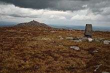 Slievenamon (Irish: Sliabh na mBan, [ˈʃlʲiəw n̪ˠə ˈmˠanˠ], "mountain of the women") is a mountain which is situated northwest of Carrick on Suir and northeast of Clonmel in County Tipperary, Ireland. It stands at 721 m (2,365 ft). Sitting at the western end of a range of low hills, Slievenamon is a striking conical mass, offering a dramatic view from the top over the counties of Tipperary, Kilkenny and Waterford. Much of its lower slopes is wooded. A low hill attached to Slievenamon, known as Carrigmaclea (aka Carraigmoclear), was the site of a battle during the Irish Rebellion of 1798.