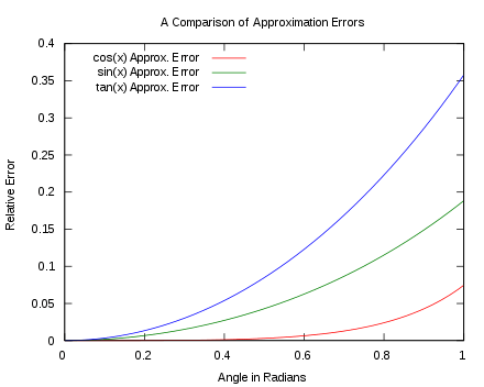 Figure 3 shows the relative errors of the small angle approximations. The angles at which the relative error exceeds 1% are as follows:
