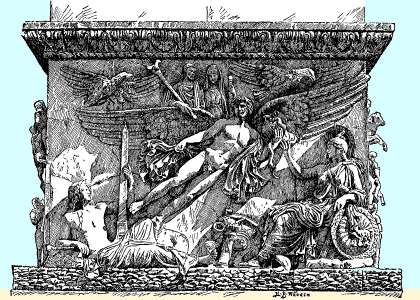 The base of the column of Antoninus, with the personification of the Campus Martius, reclining, left