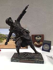 The cup depicts a soldier throwing a grenade, and was created by Georges Chauvel, a soldier in the French Army.[2]